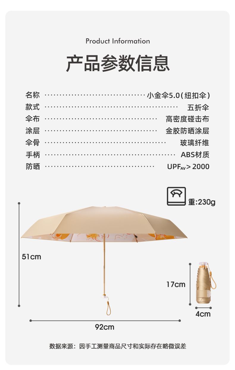 商品名称:FIYU小金伞5.0(纽扣伞)一把伞抵五瓶防晒霜