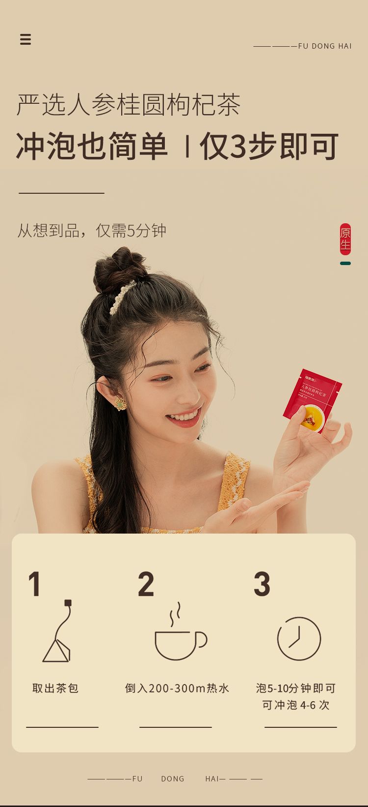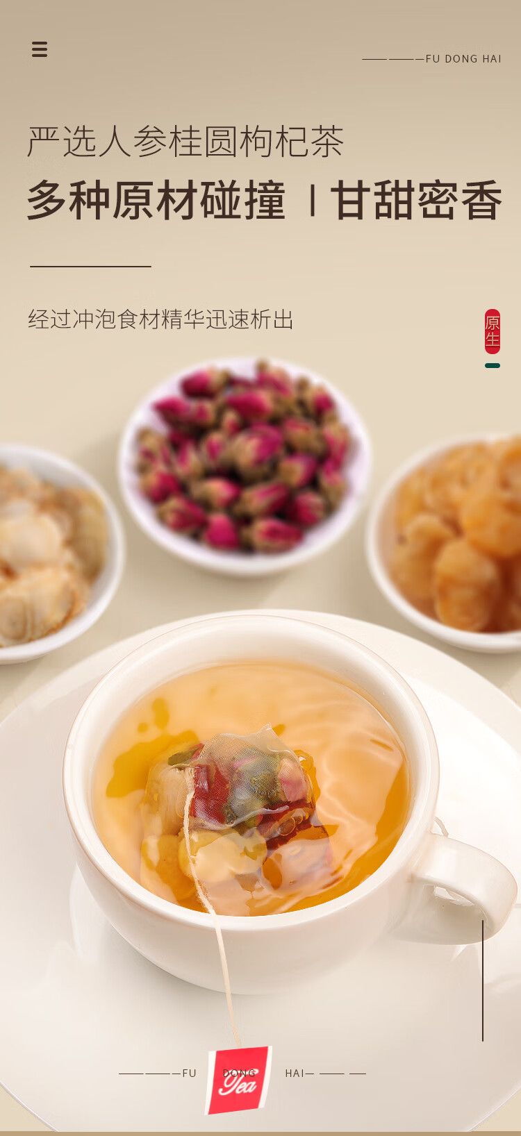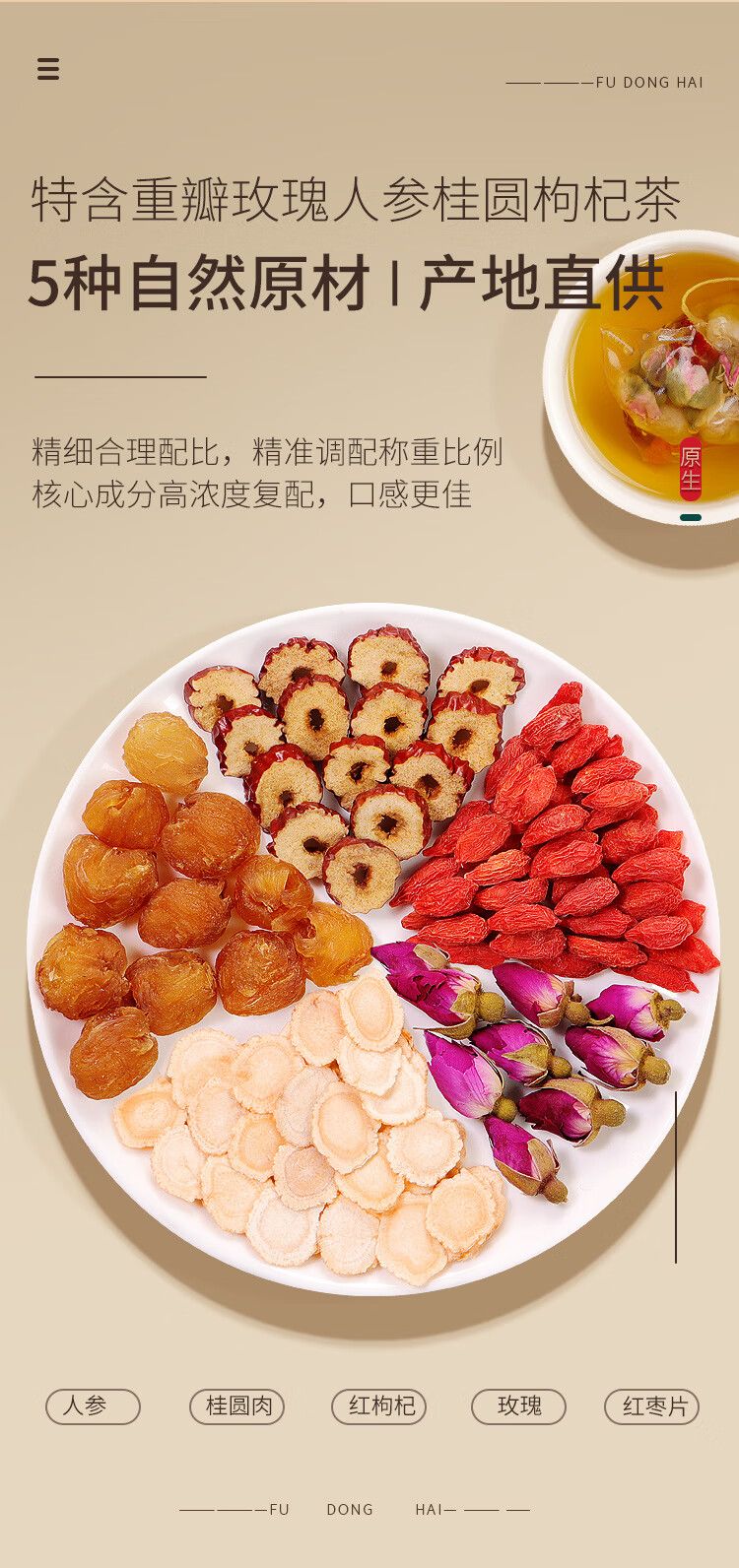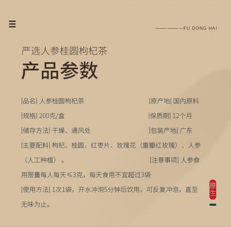 商品名称:【福东海】人参桂圆枸杞红枣茶200g/盒