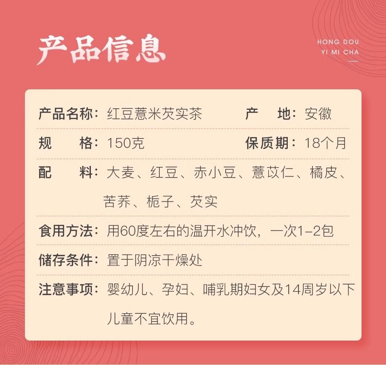 商品名称:【福东海】红豆薏米芡实茶150克/袋