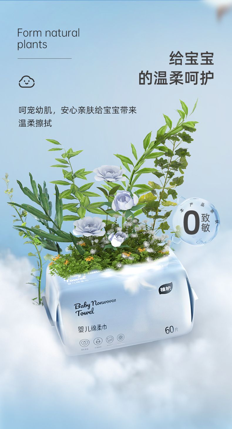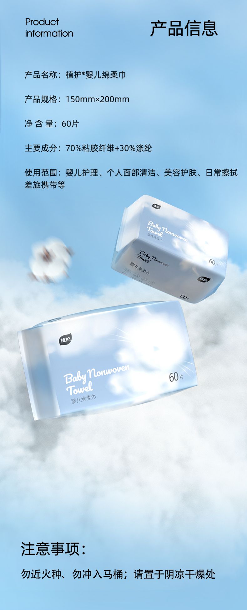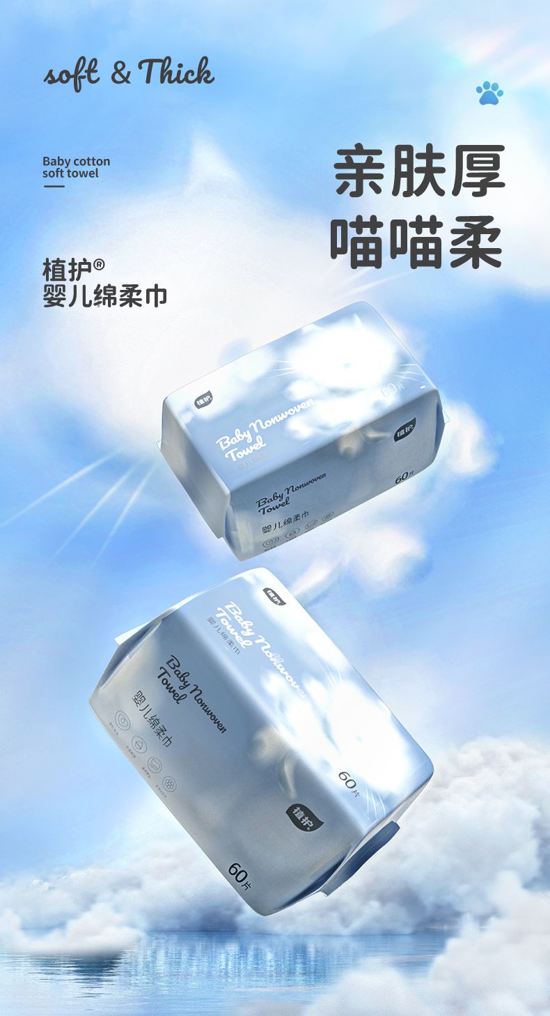 商品名称:植护 喵喵婴儿绵柔巾60片/包(10包/箱)