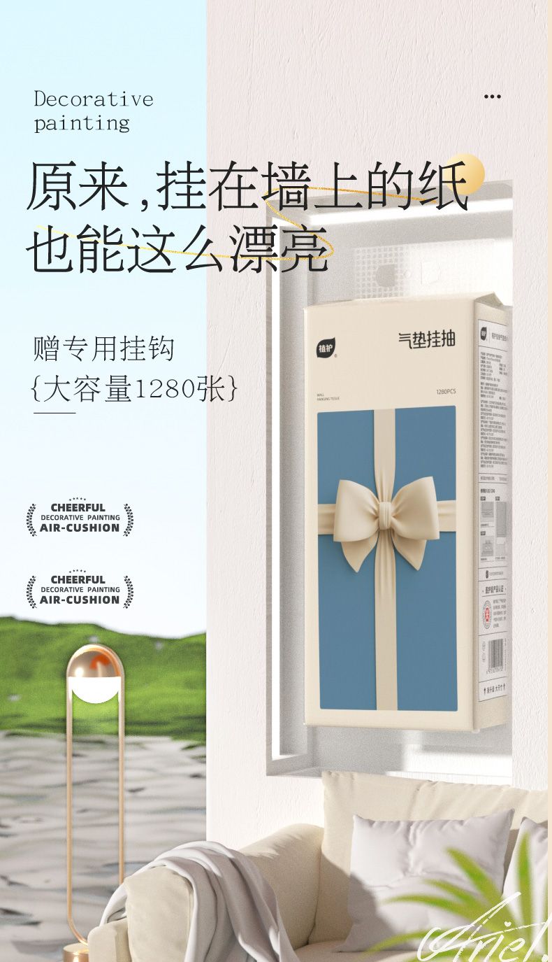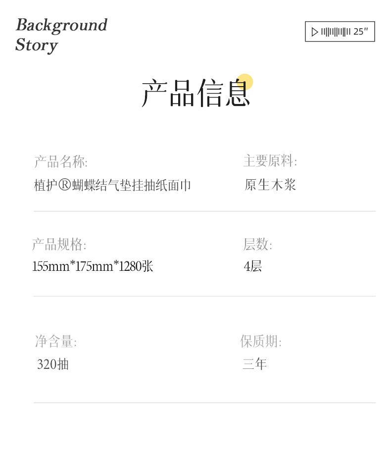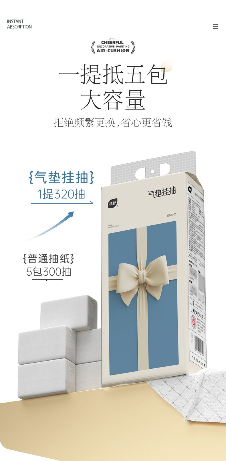 商品名称:植护 蝴蝶结气垫挂抽纸面巾4层320抽/提(6提/箱)