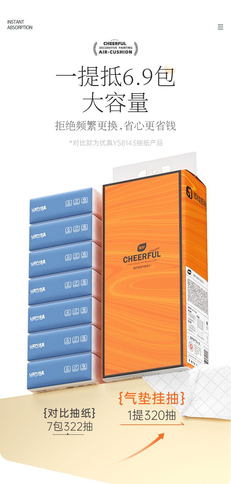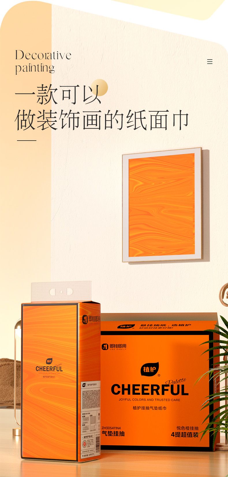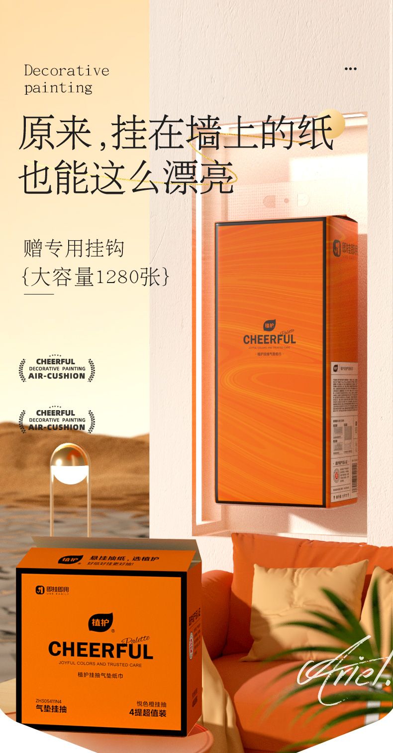 商品名称:植护 悦色橙气垫挂抽纸面巾(升级版)4层320抽/提(4提/箱)