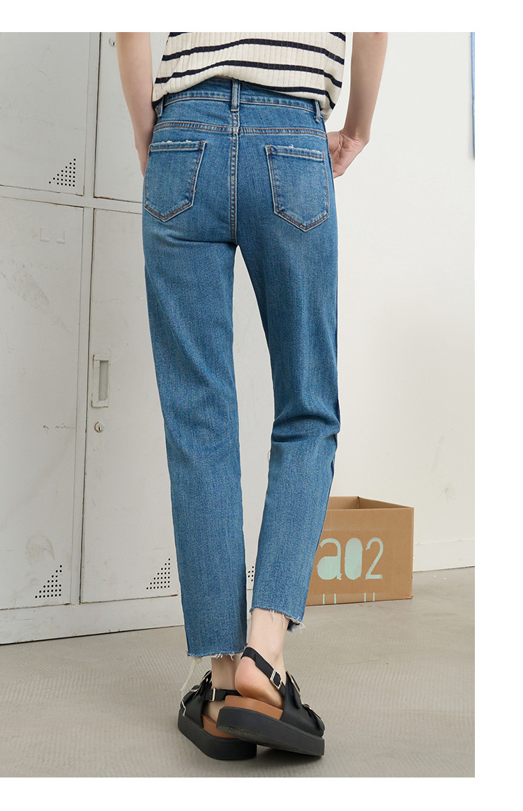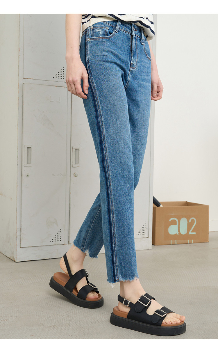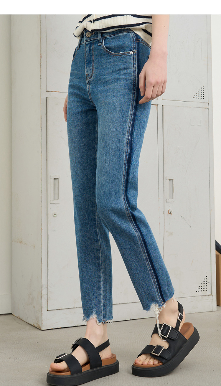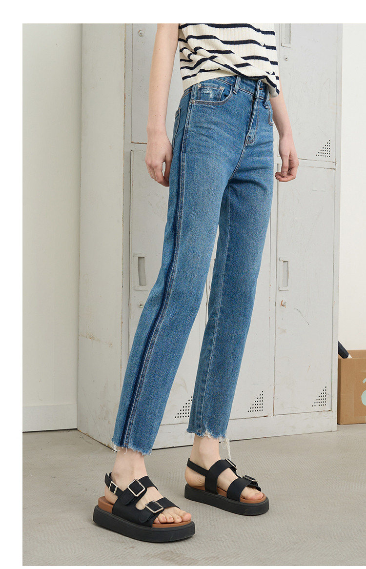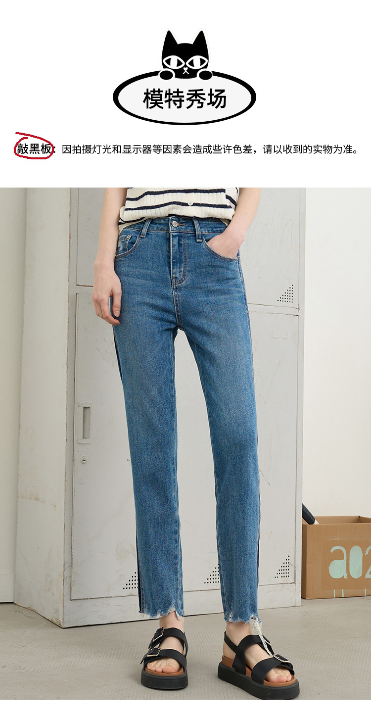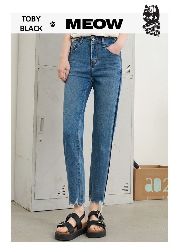 商品名称:撞色设计感翻边高腰毛边直筒裤2025夏季百搭休闲女式牛仔裤 139805