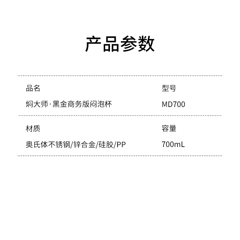 商品名称:焖大师700毫升黑金商务版闷泡杯MD700