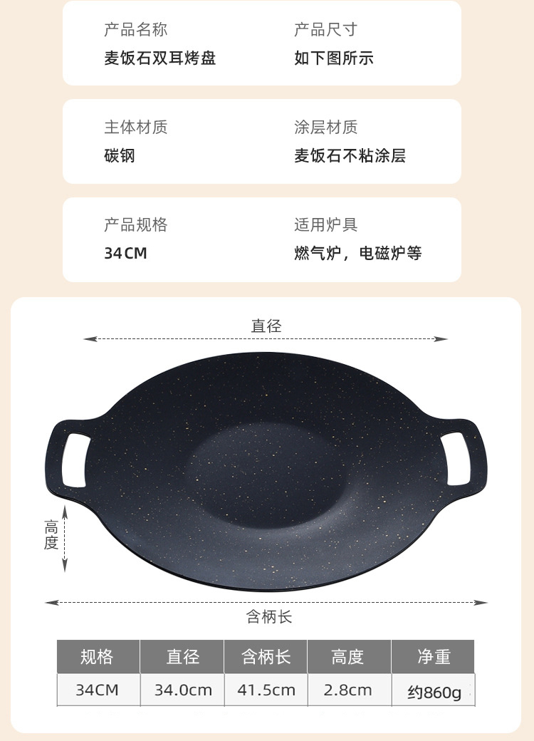 商品名称:徽羚羊34厘米云烹麦乐石烤肉盘HLY-SK-24001