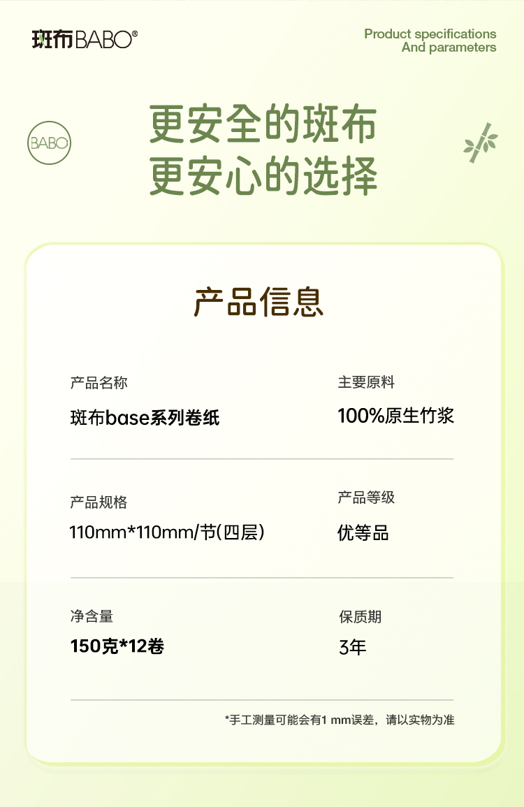 商品名称:BABO/斑布base系列有芯卷纸4层150g*12卷
