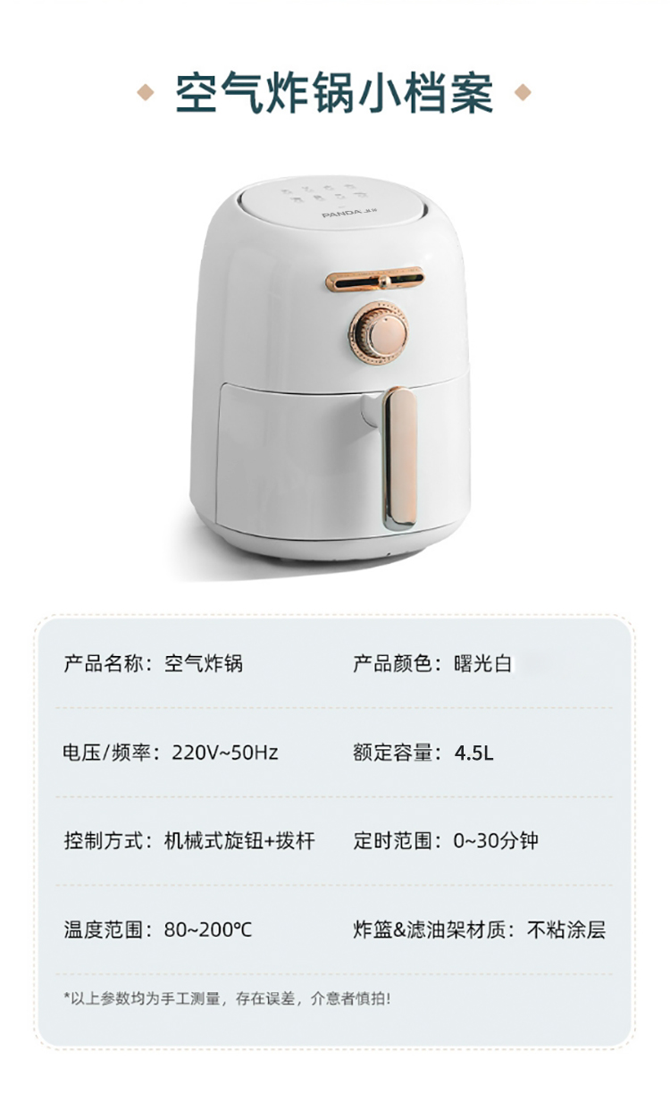商品名称:PANDA/熊猫4.5升空气炸锅TRKZ1401