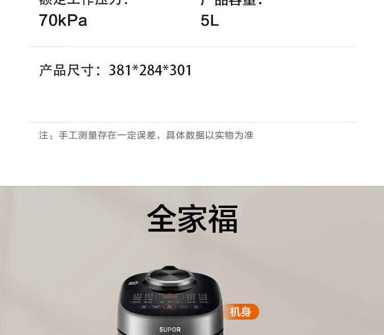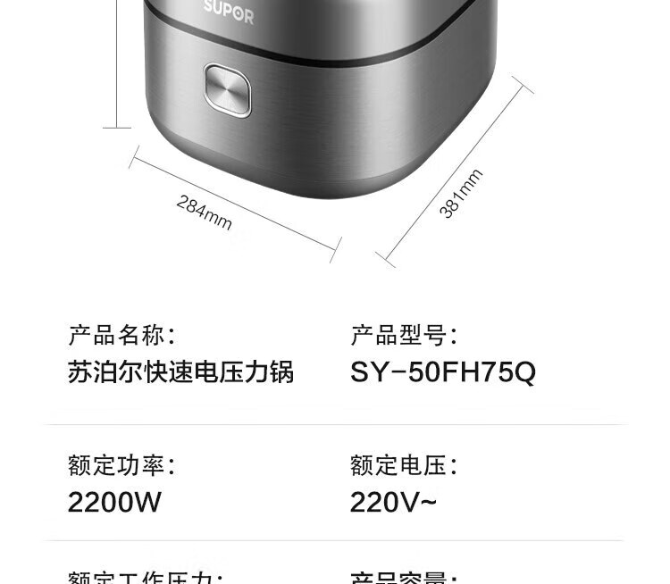商品名称:SUPOR/苏泊尔5升电压力锅SY-50FH75Q