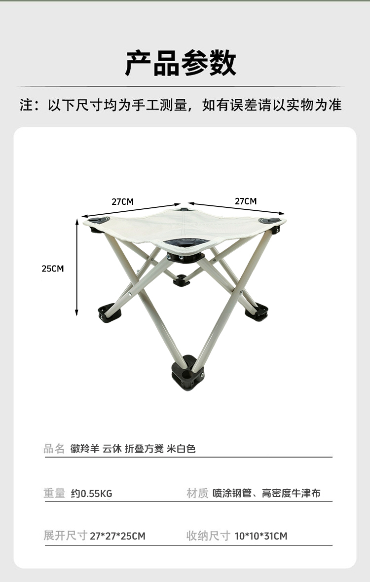 商品名称:徽羚云休折叠方凳-米白色HLY-ZDY-23003