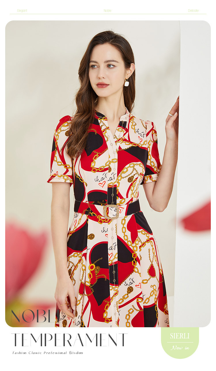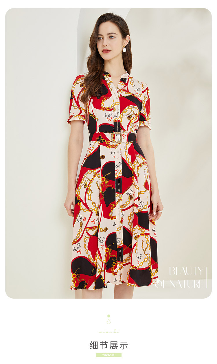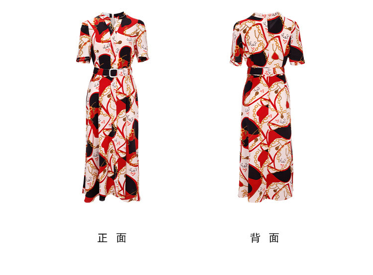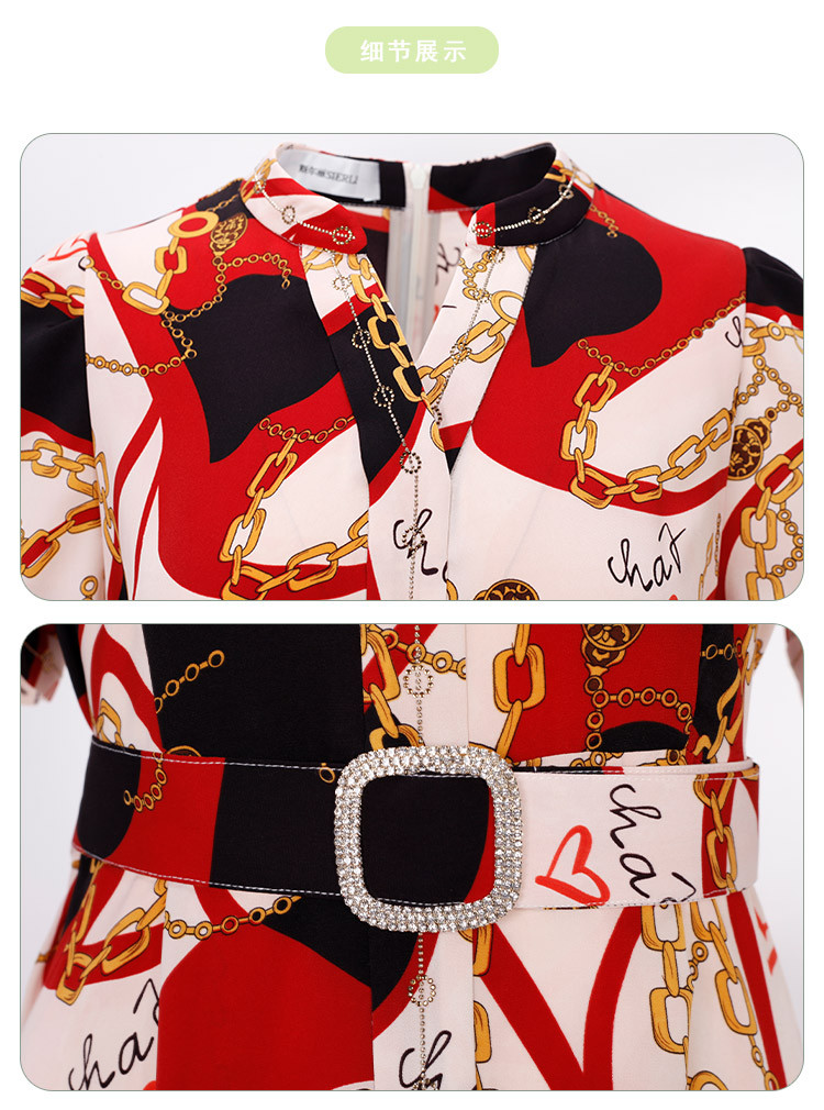 商品名称:商场同款春季名媛复古设计V领印花气质收腰显瘦连衣裙 071775