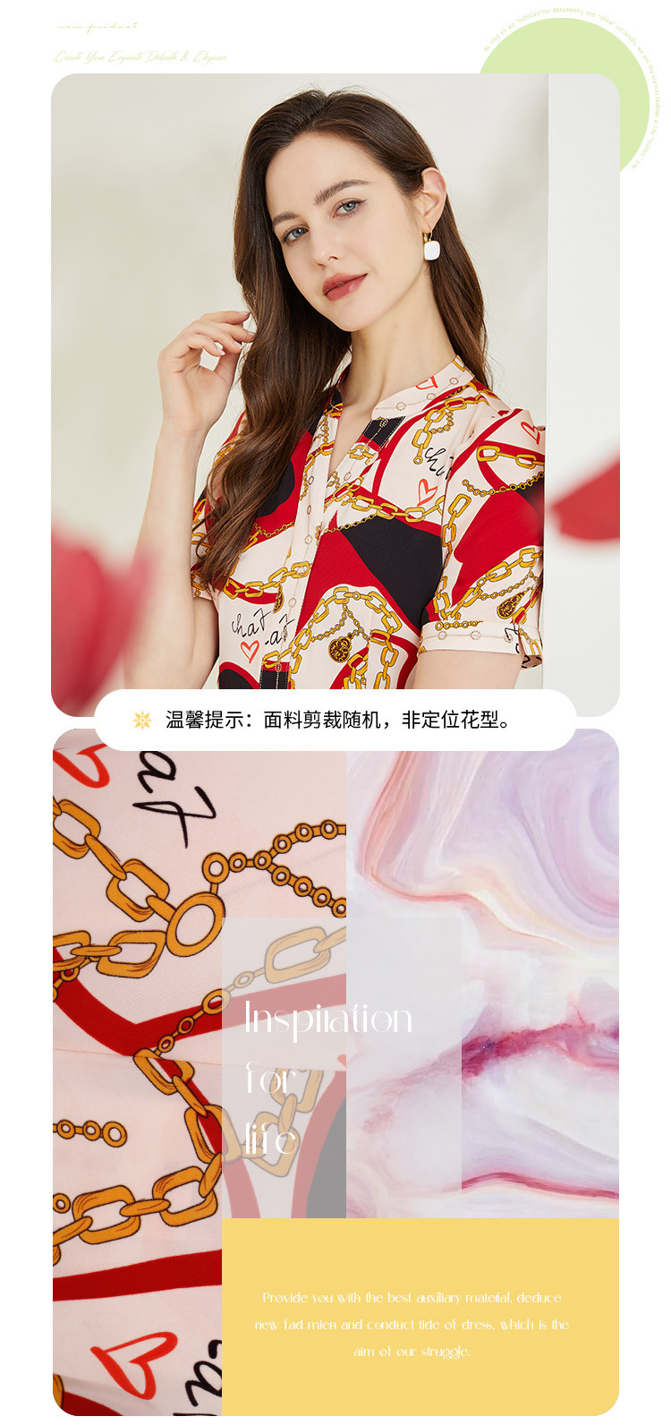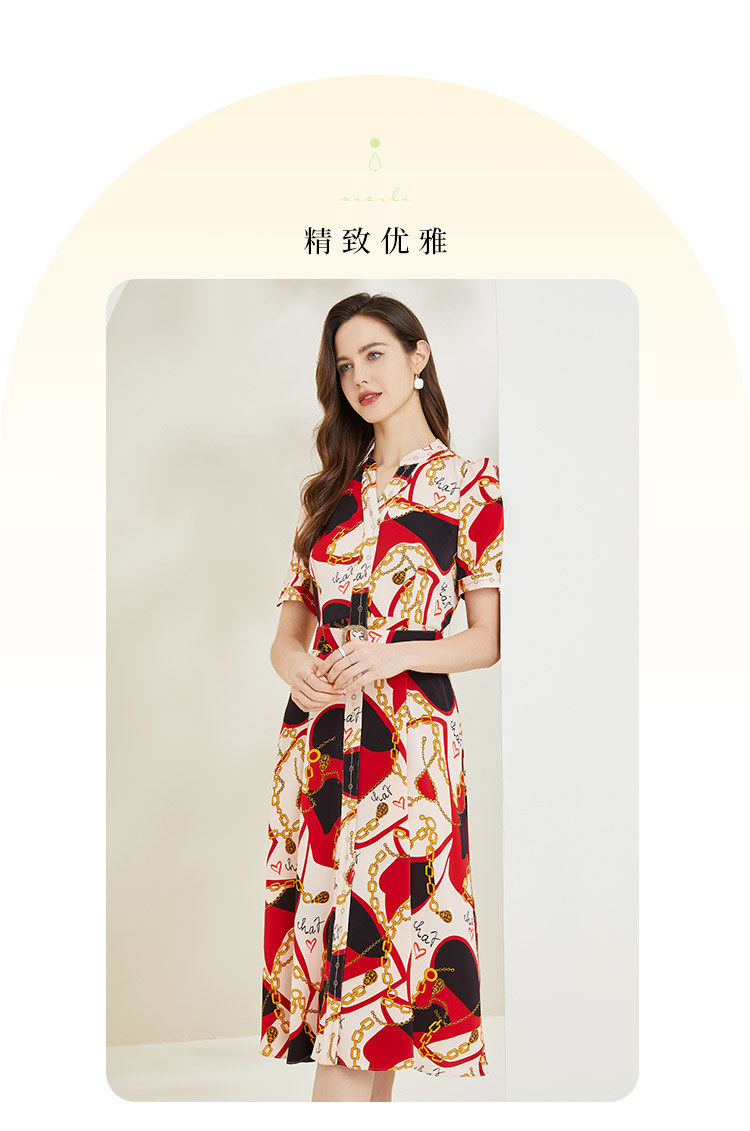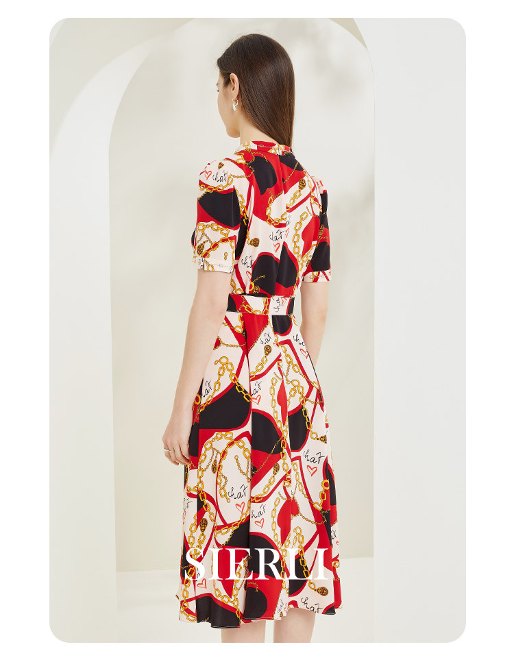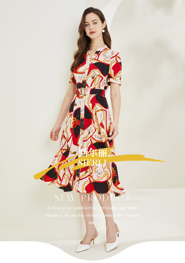 商品名称:商场同款春季名媛复古设计V领印花气质收腰显瘦连衣裙 071775