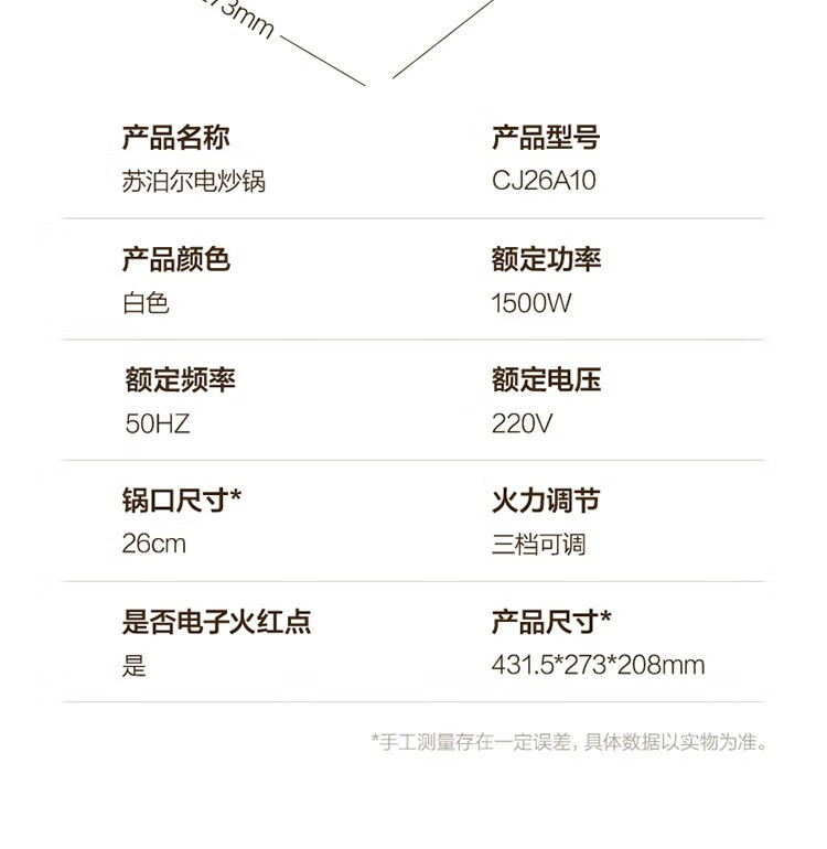 商品名称:SUPOR/苏泊尔3.5升电炒锅CJ26A10
