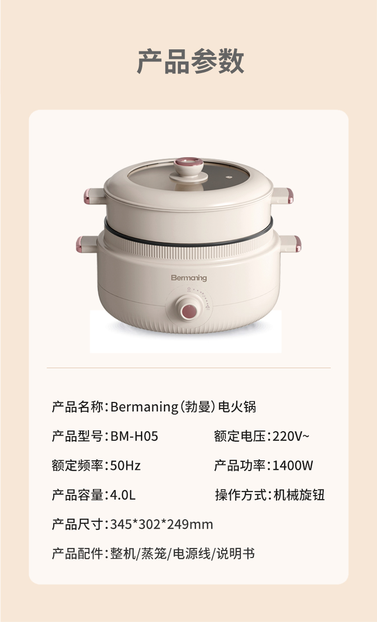 商品名称:Bernaning/勃曼4升电火锅 BM-H05