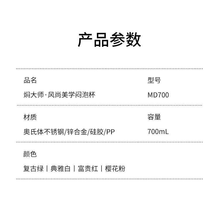 商品名称:焖大师700毫升风尚美学闷泡杯MD700