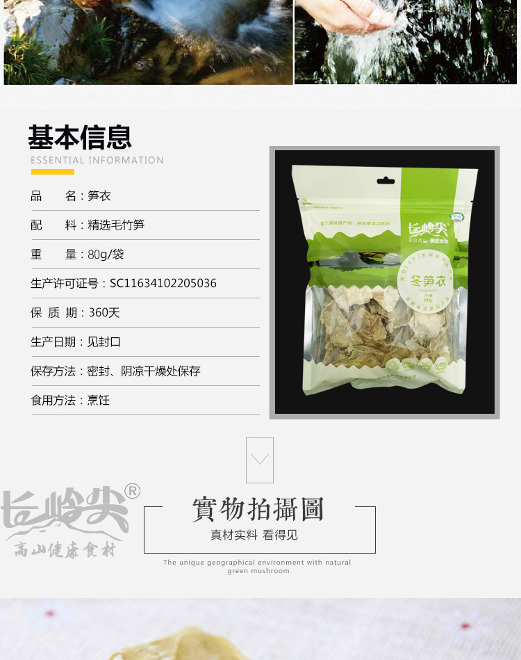 商品名称:长岭尖原野冬笋衣80g*2袋