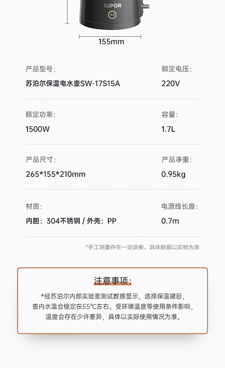 商品名称:SUPOR/苏泊尔1.7升电水壶SW-17S15A