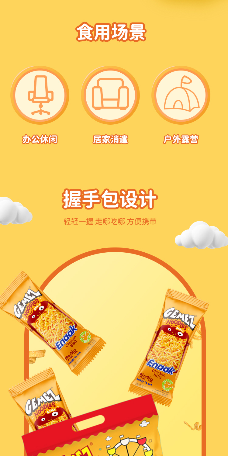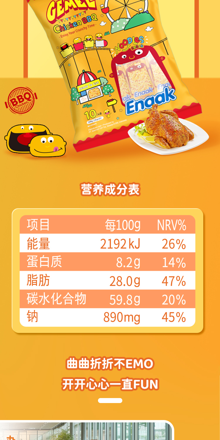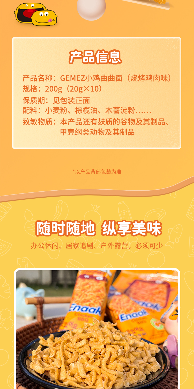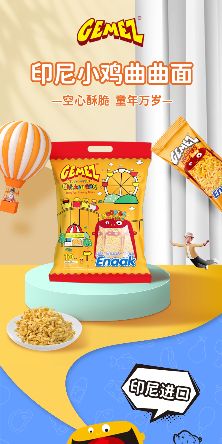 商品名称:Gemez印尼进口烧烤鸡肉味小鸡曲曲面200g*3袋