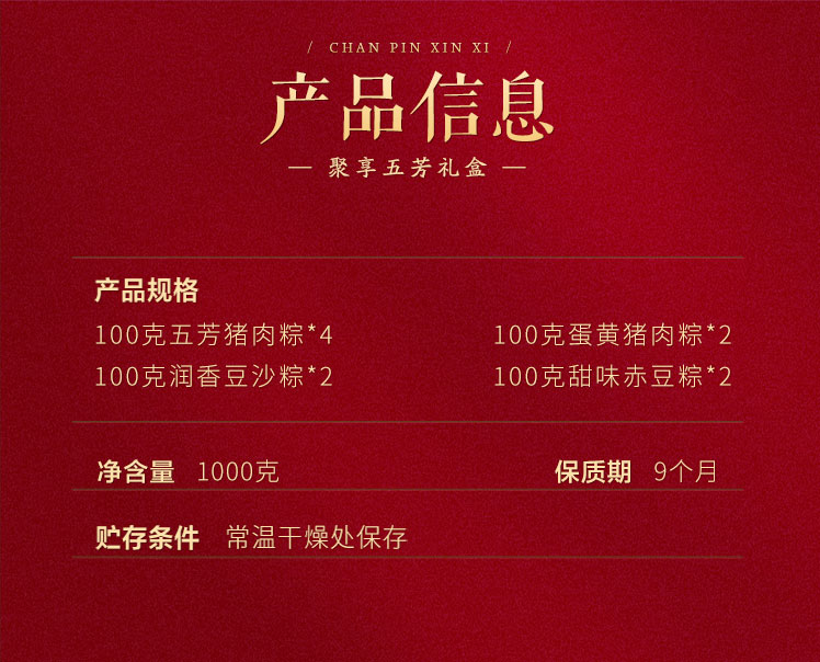 商品名称:五芳斋聚享五芳粽子礼盒1000g