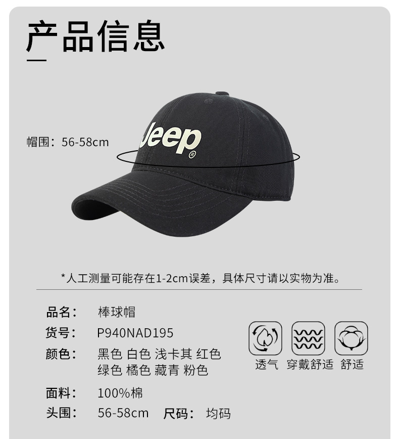 商品名称:Jeep/吉普休闲户外棒球帽P940NAD195