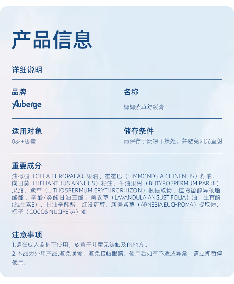 商品名称:Auberge/艾比椰椰紫草舒缓膏6g*3支 颜色随机不接受指定