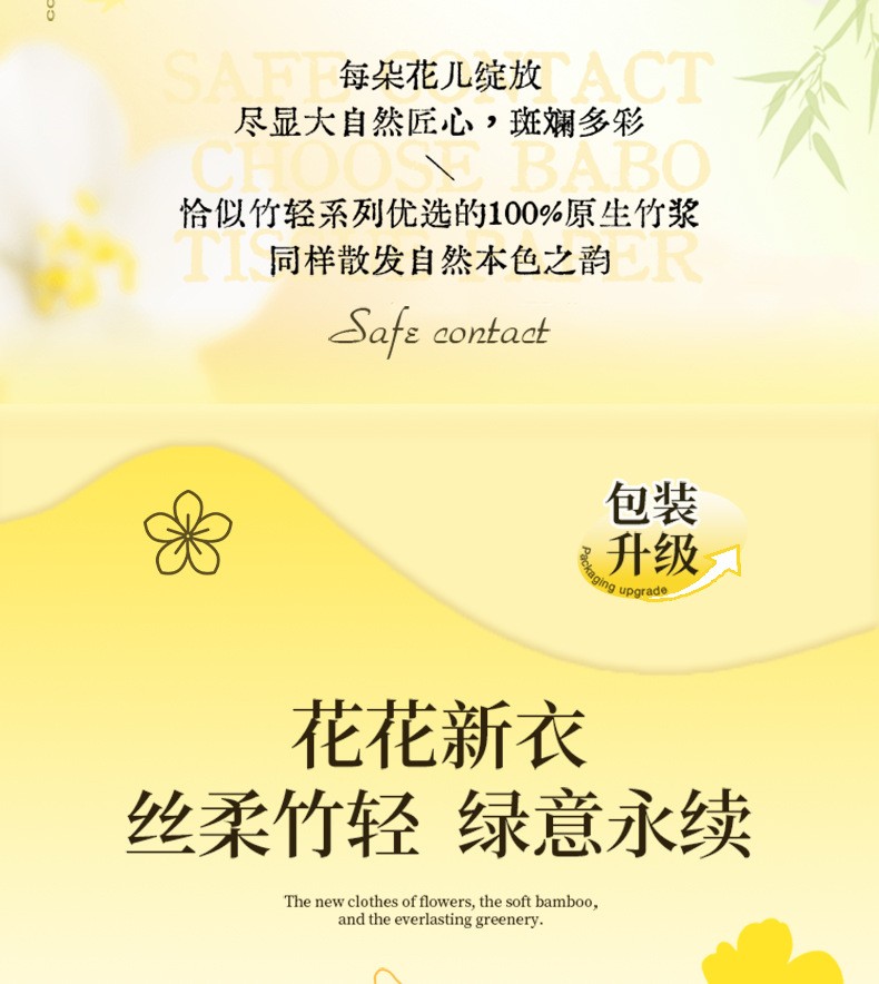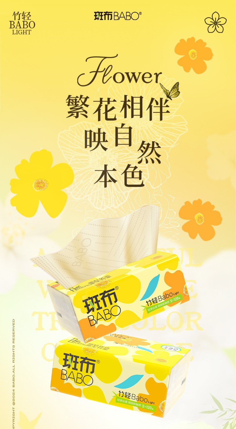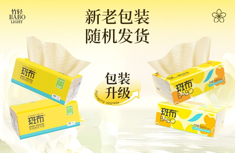 商品名称:BABO/斑布竹轻系列面巾纸抽纸整箱3层100抽*20包