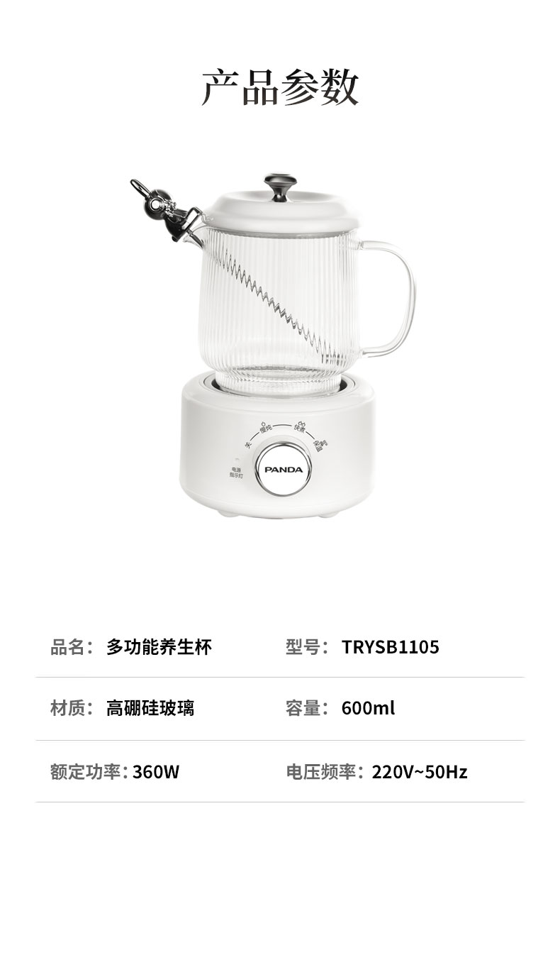商品名称:PANDA/熊猫600毫升多功能养生杯TRYSB1105