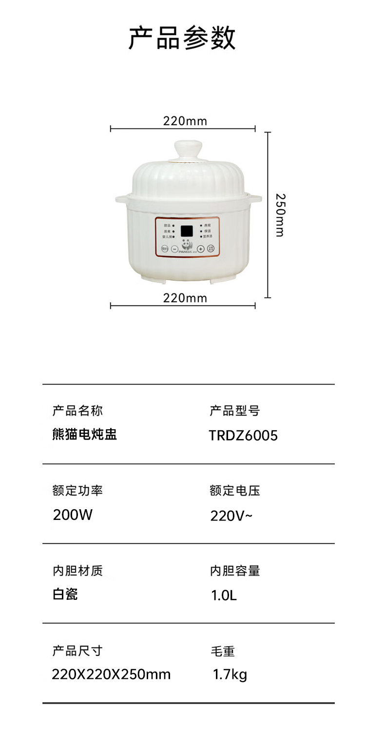商品名称:PANDA/熊猫1升电炖盅TRDZ6005