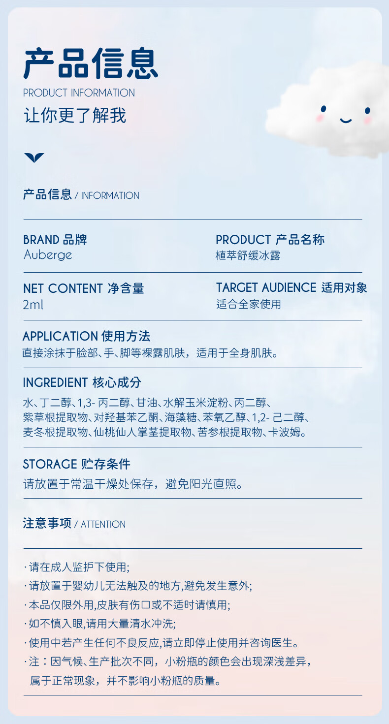 商品名称:Auberge/艾比植萃止痒舒缓冰露-粉色2ml*3瓶