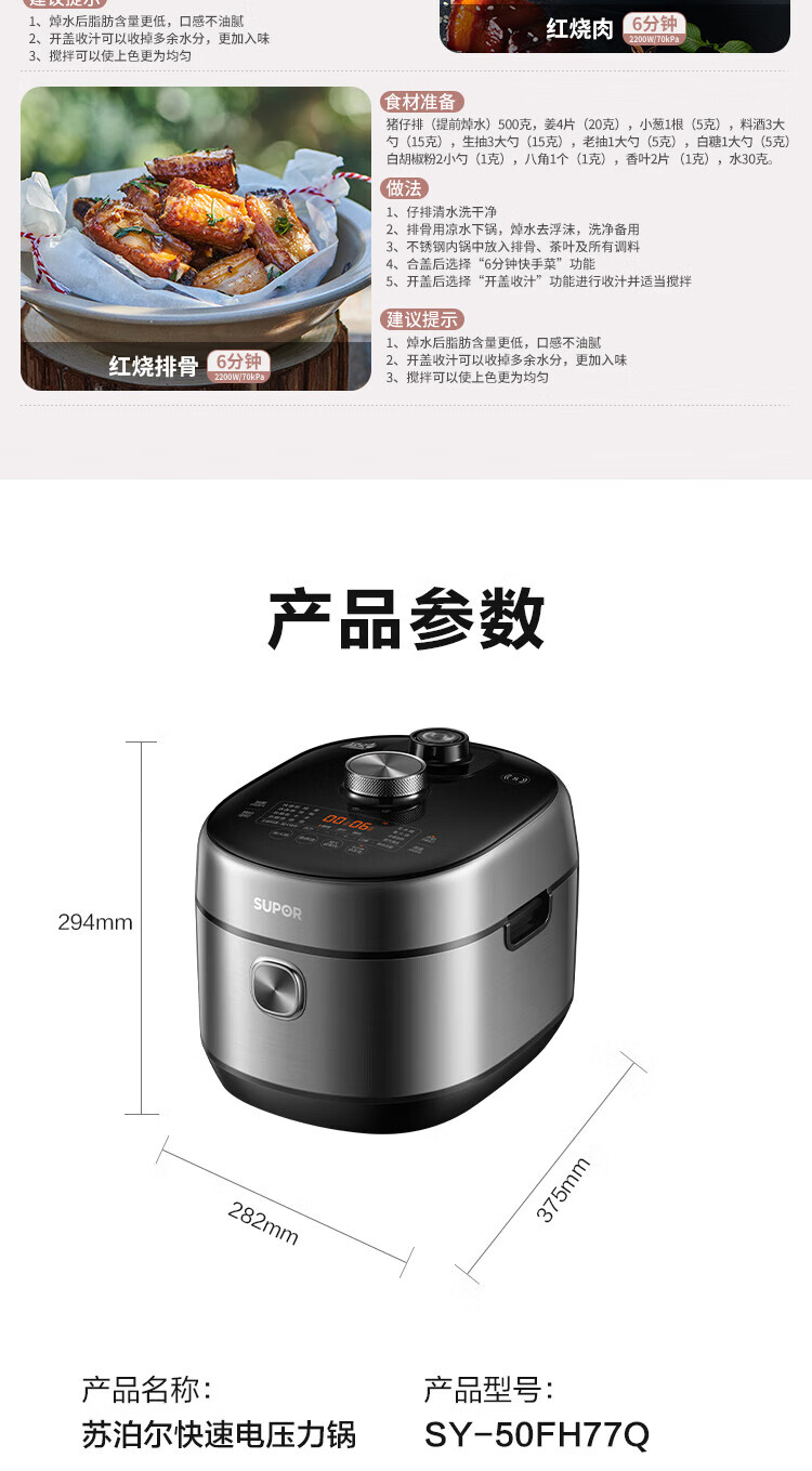 商品名称:SUPOR/苏泊尔5升电压力锅SY-50FH77Q