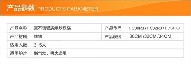商品名称:SUPOR/苏泊尔32cm真不锈轻质爆炒铁锅FC32R5