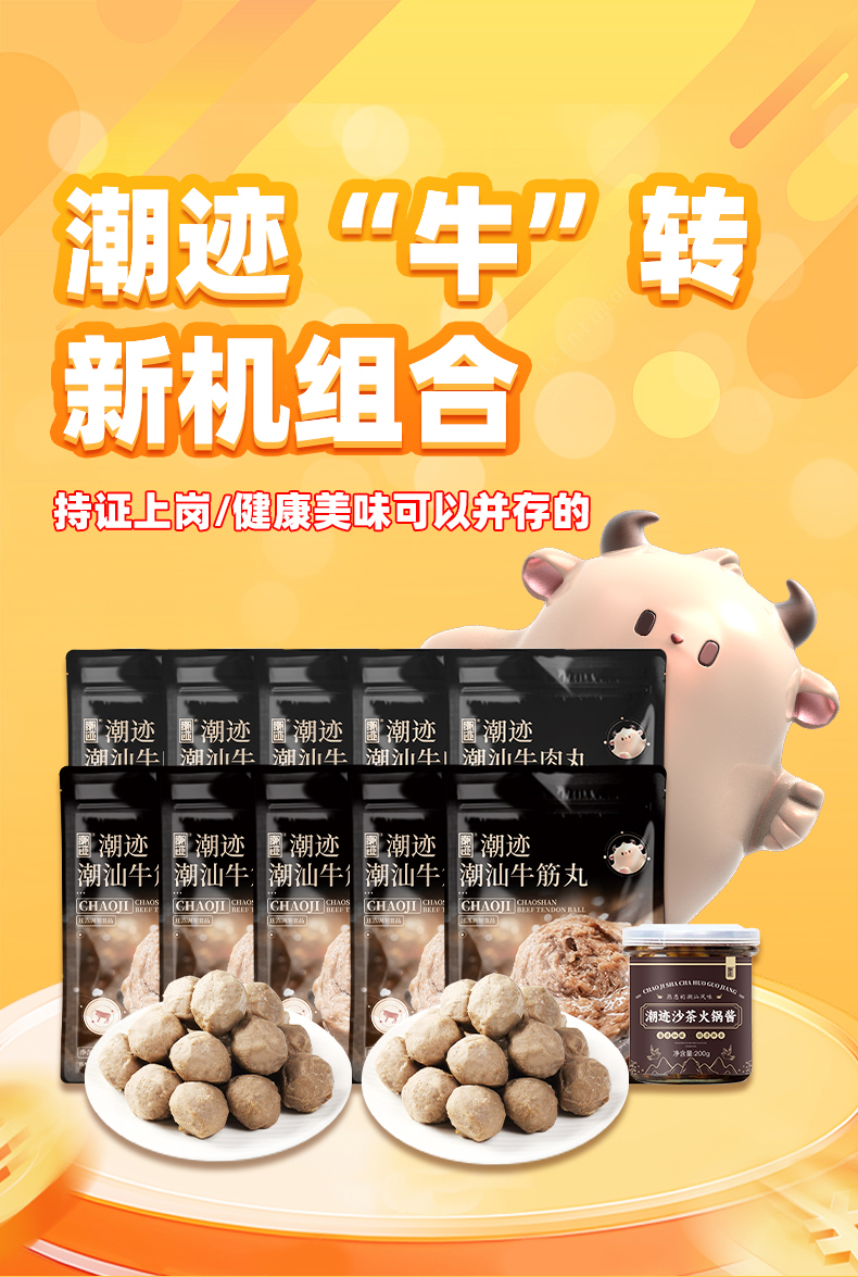 商品名称:【顺丰配送】潮迹牛转新机牛肉丸牛筋丸组合2700g