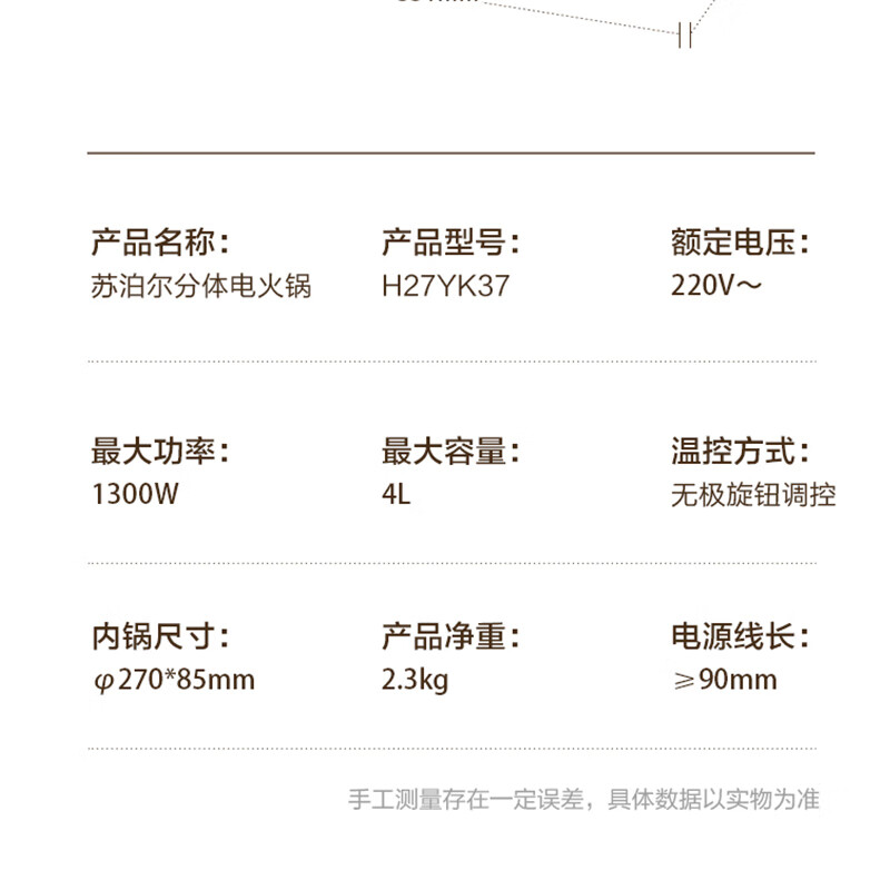 商品名称:SUPOR/苏泊尔4升电火锅H27YK37
