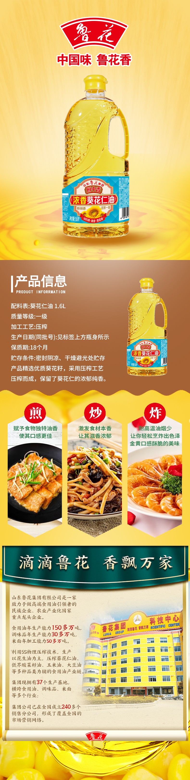 商品名称:【京东/顺丰配送】鲁花厨中香浓香葵花仁油1.6L