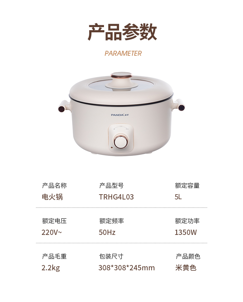 商品名称:PANDA/熊猫5升多功能电火锅TRHG4L03