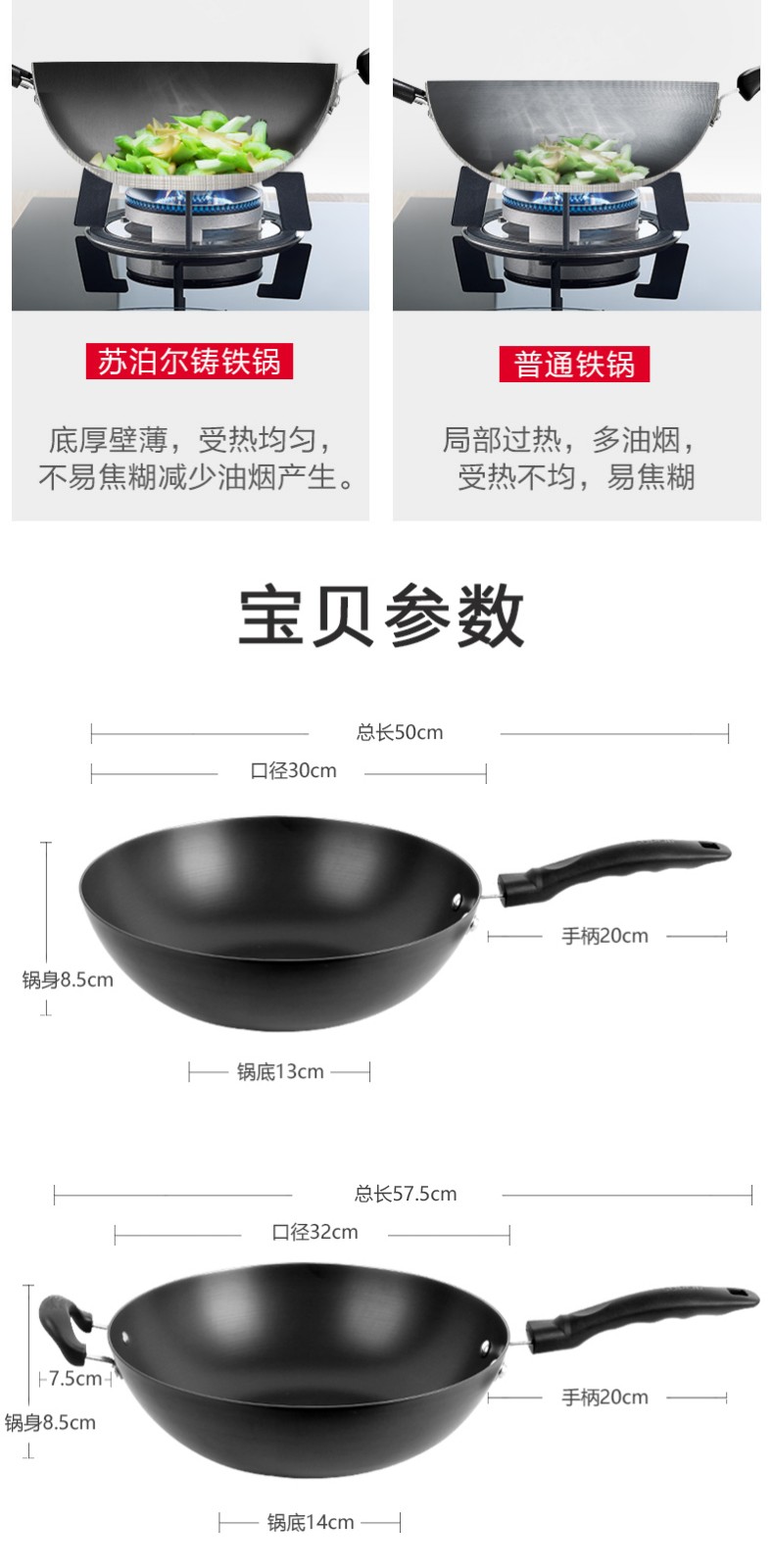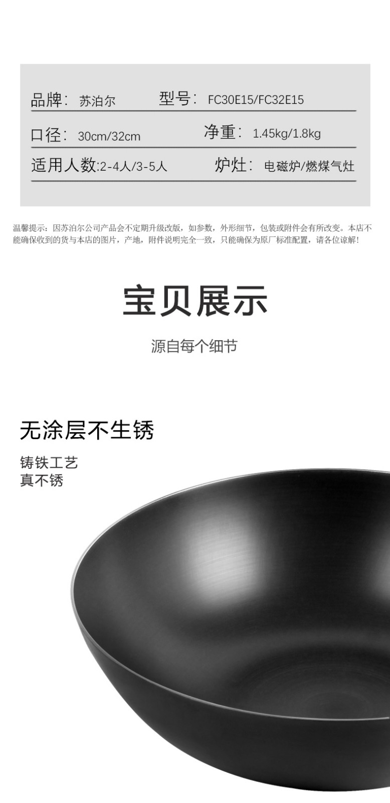 商品名称:SUPOR/苏泊尔无涂层耐锈铸铁锅