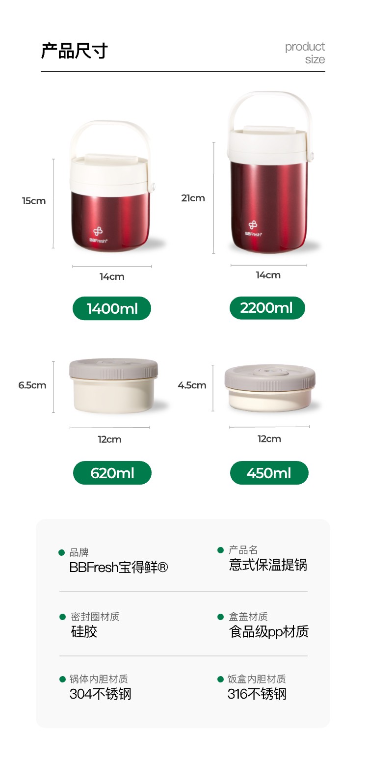 商品名称:BBFRESH/宝得鲜意式保温提锅
