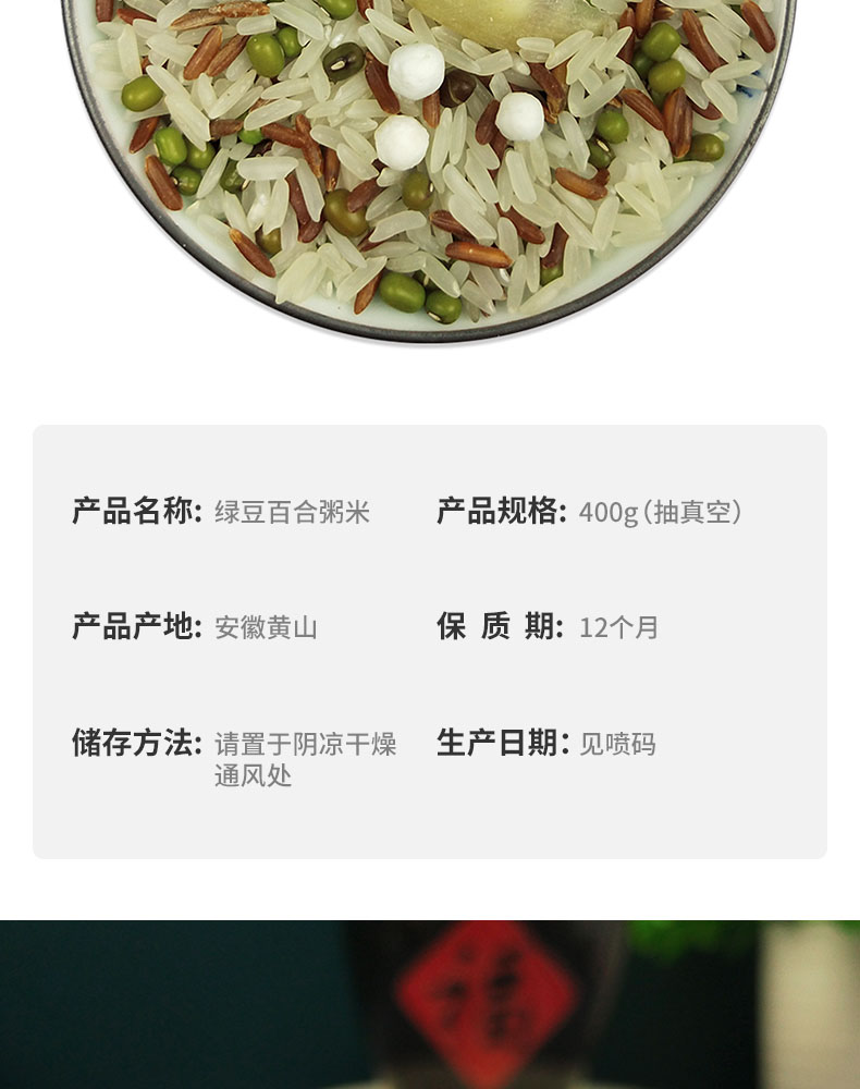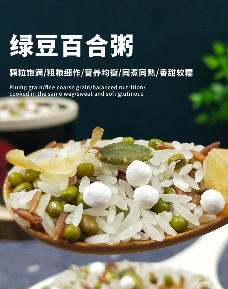 商品名称:长岭尖绿豆百合粥米400g*2袋
