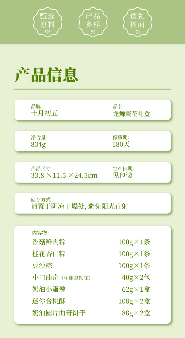 商品名称:十月初五龙舞繁花粽子糕点礼盒834g