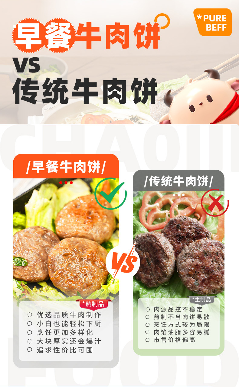 商品名称:【顺丰配送】潮迹早餐牛肉饼150g*3包