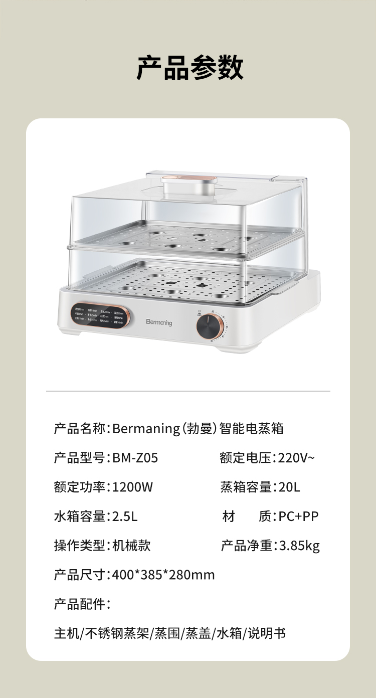 商品名称:Bernaning/勃曼20升智能电蒸箱BM-Z05