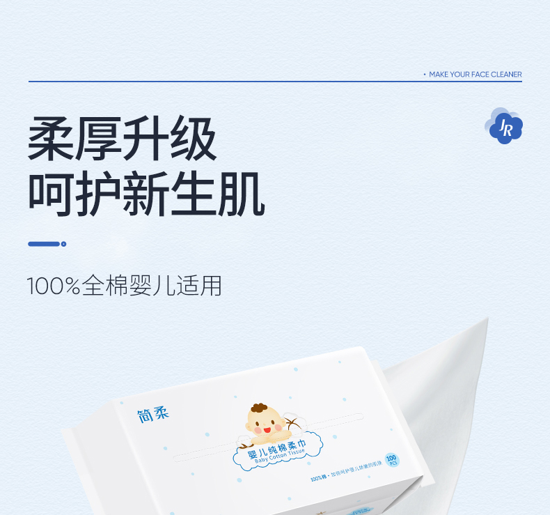 商品名称:简柔婴儿全棉柔巾100片*3包HM-029