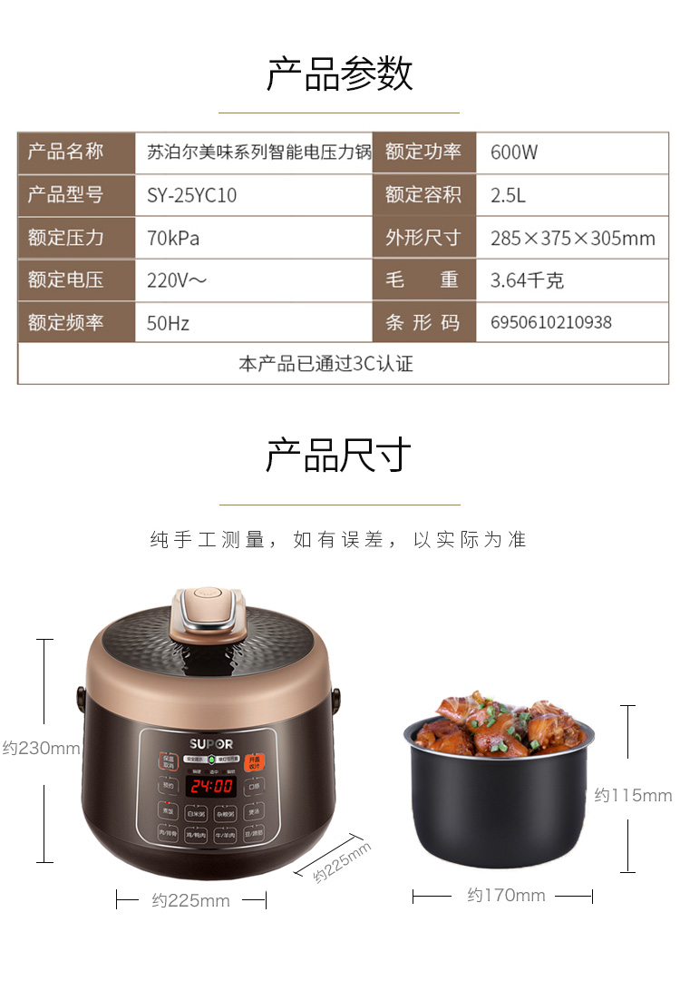 商品名称:SUPOR/苏泊尔2.5升电压力锅SY-25YC10