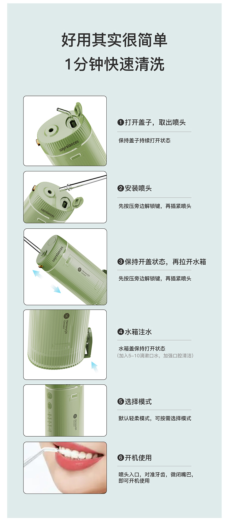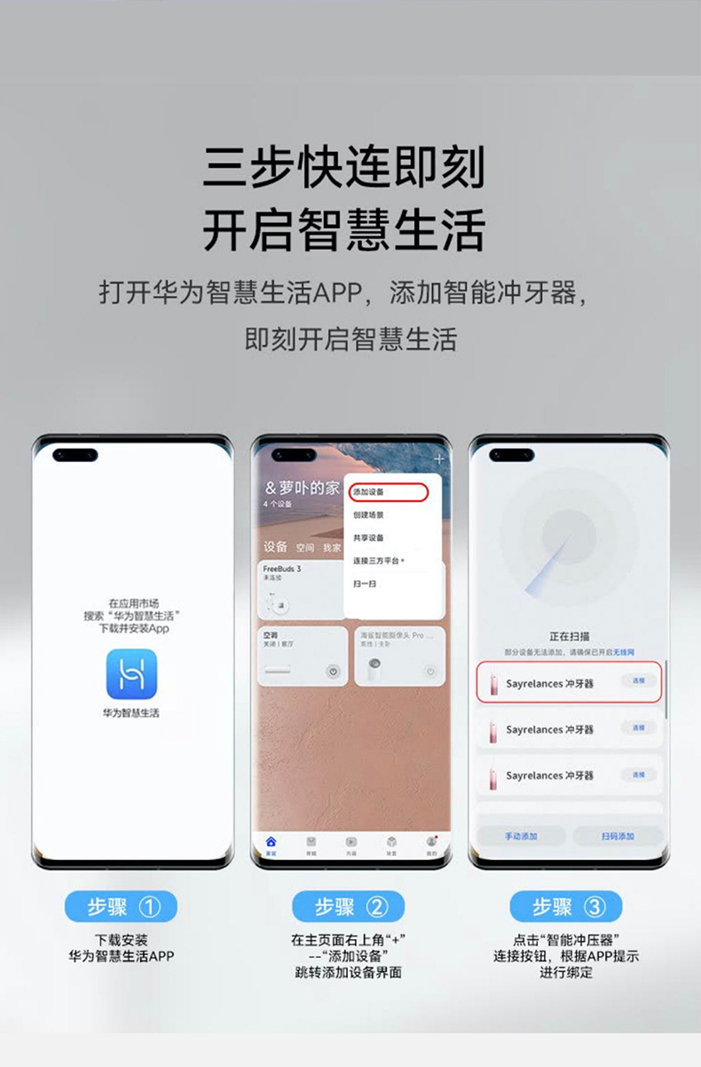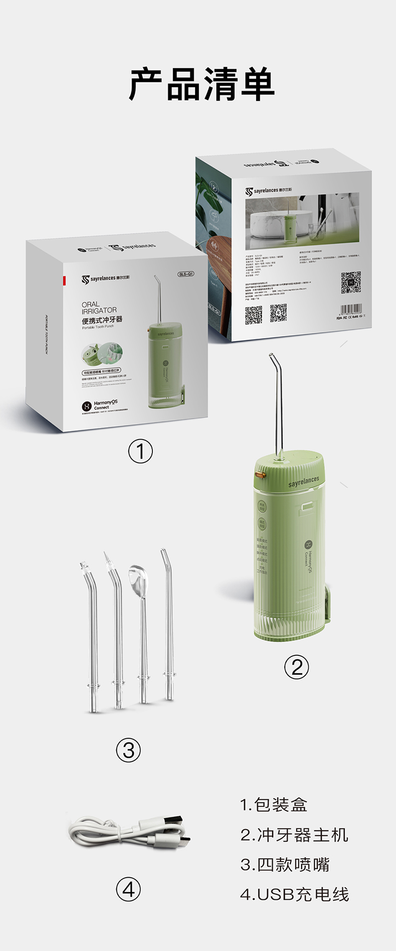 sayrelances/赛尔兰斯160毫升支持鸿蒙智联电动冲牙器-4支喷头SLS-QI