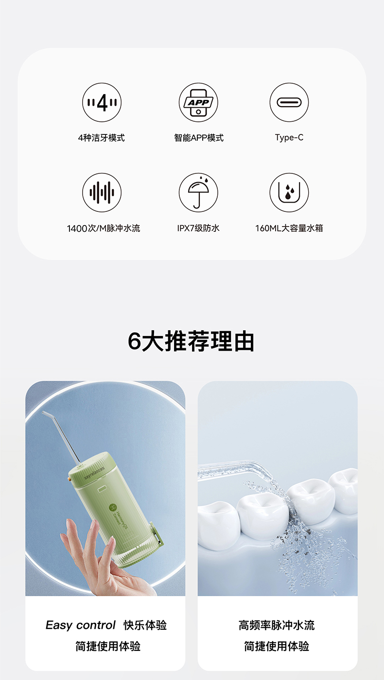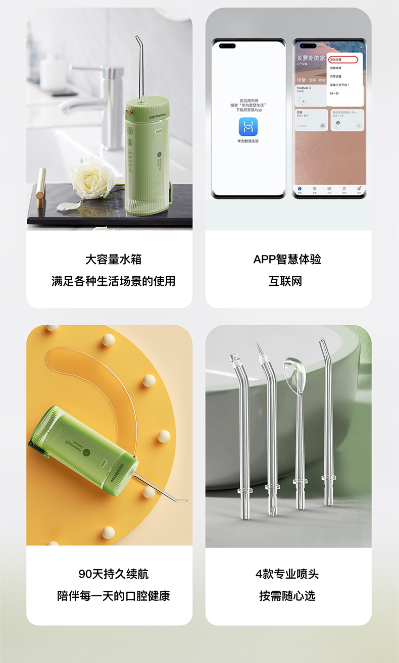 商品名称:sayrelances/赛尔兰斯160毫升支持鸿蒙智联电动冲牙器-4支喷头SLS-QI