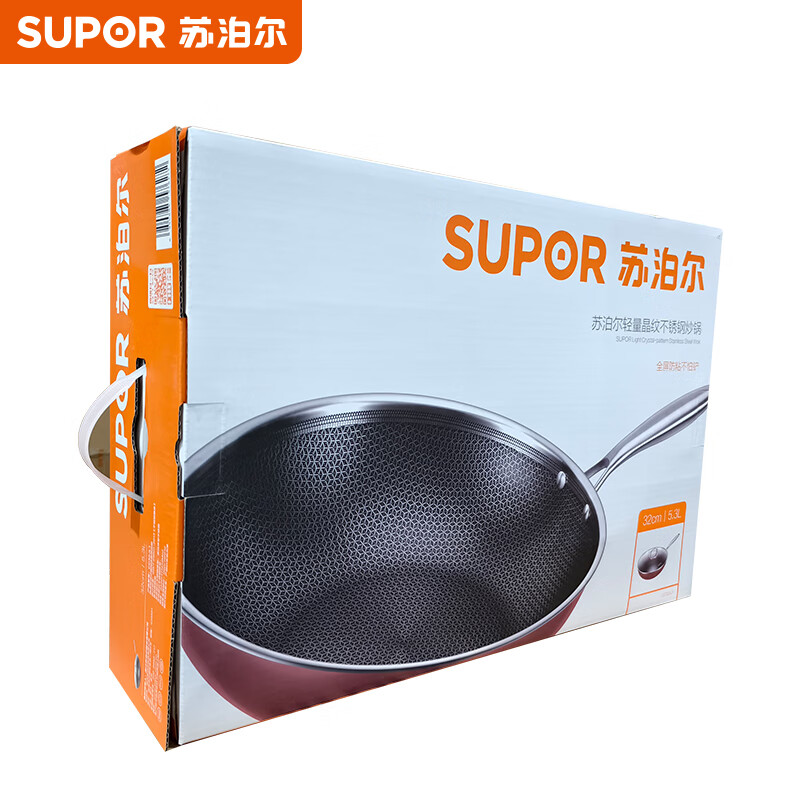SUPOR/苏泊尔轻量晶纹不锈钢炒锅