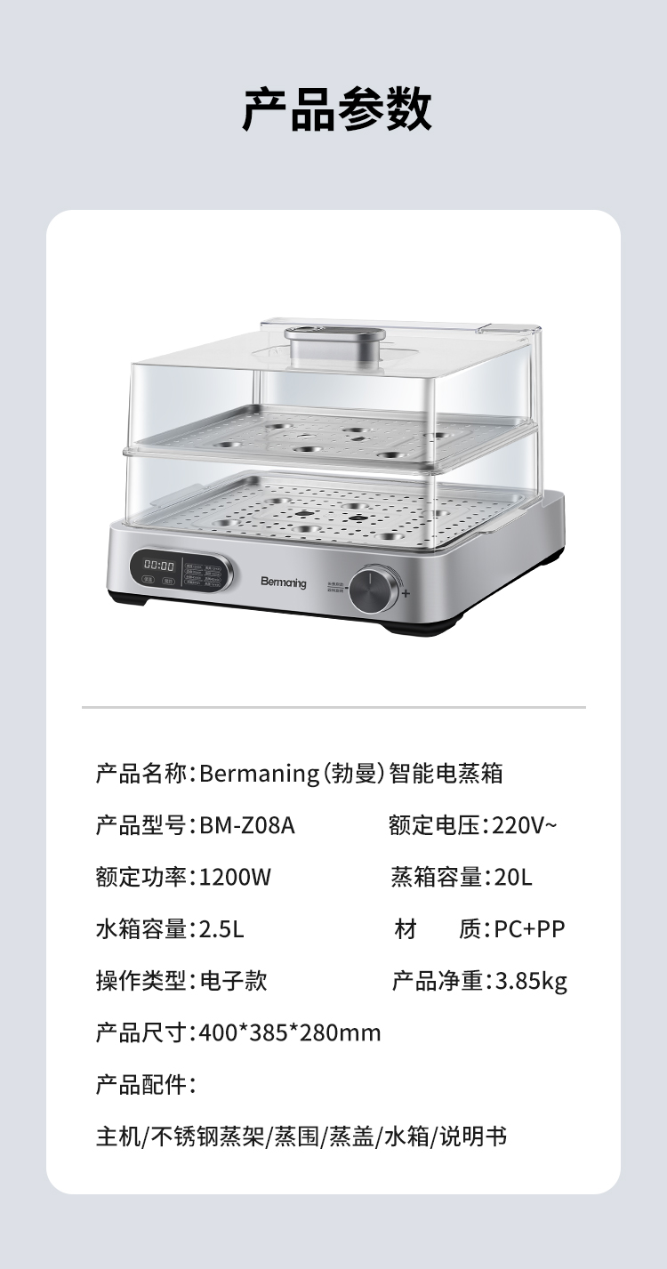 商品名称:Bernaning/勃曼20升智能电蒸箱BM-Z08A