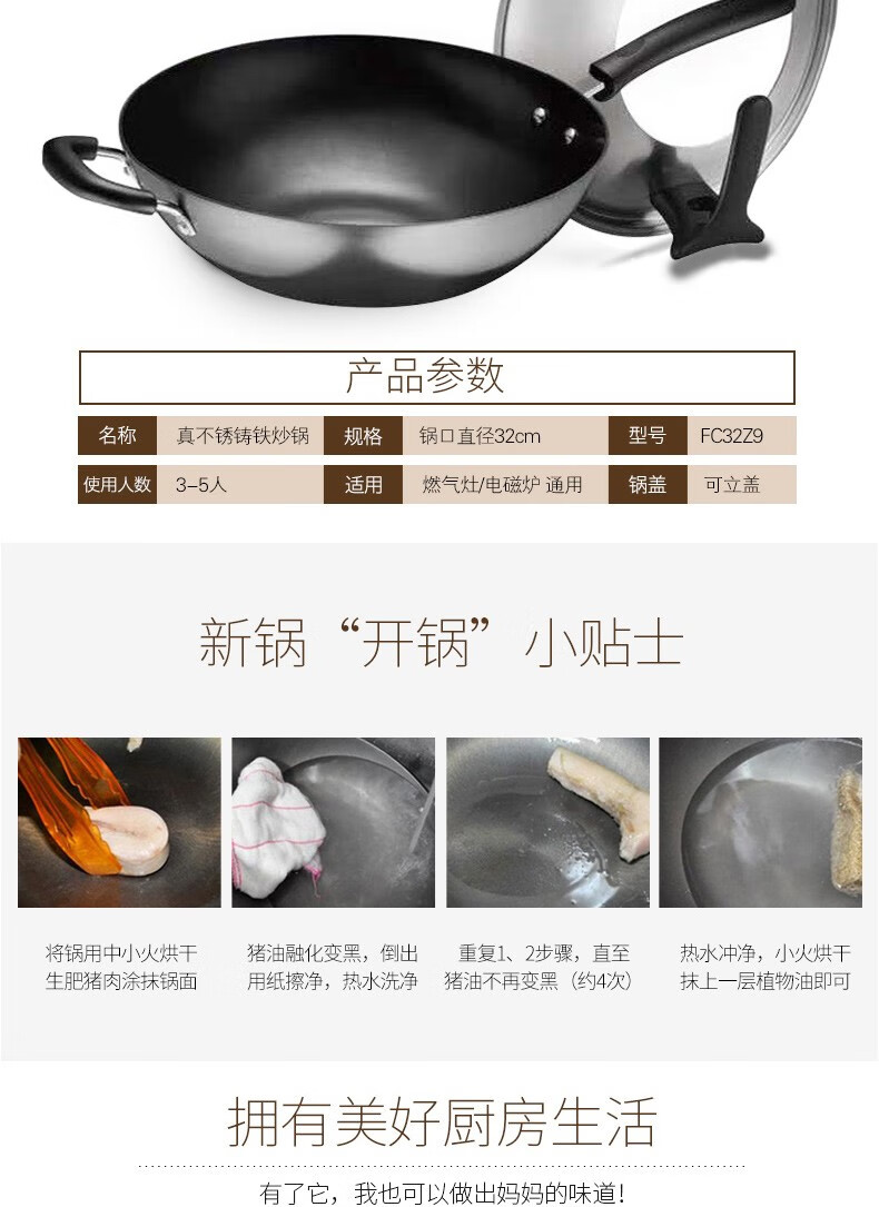 商品名称:SUPOR/苏泊尔真不锈铸铁炒锅