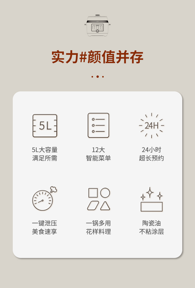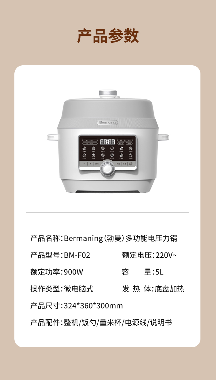 商品名称:Bernaning/勃曼5升多功能电压力锅BM-F02