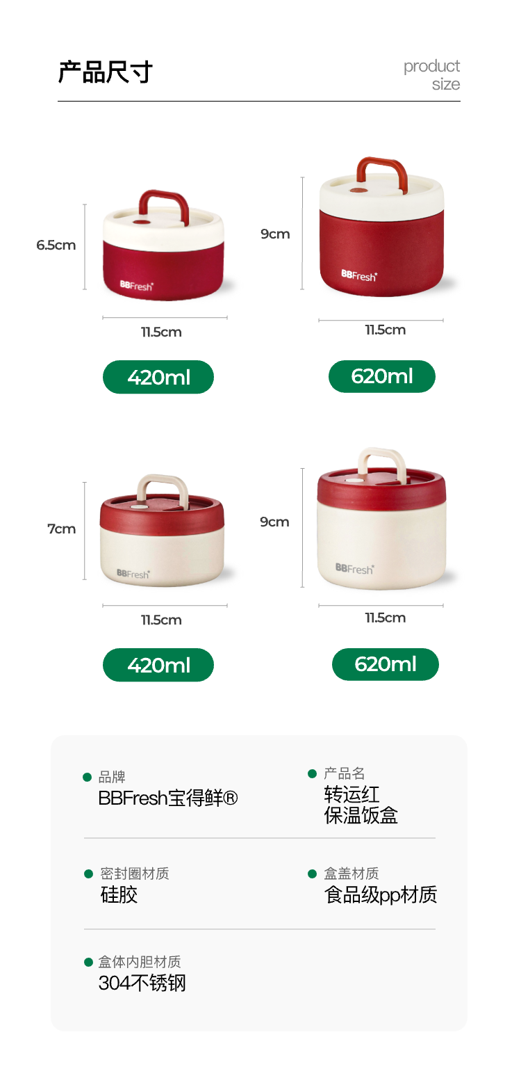商品名称:BBFRESH/宝得鲜慕斯系列转运红保温饭盒