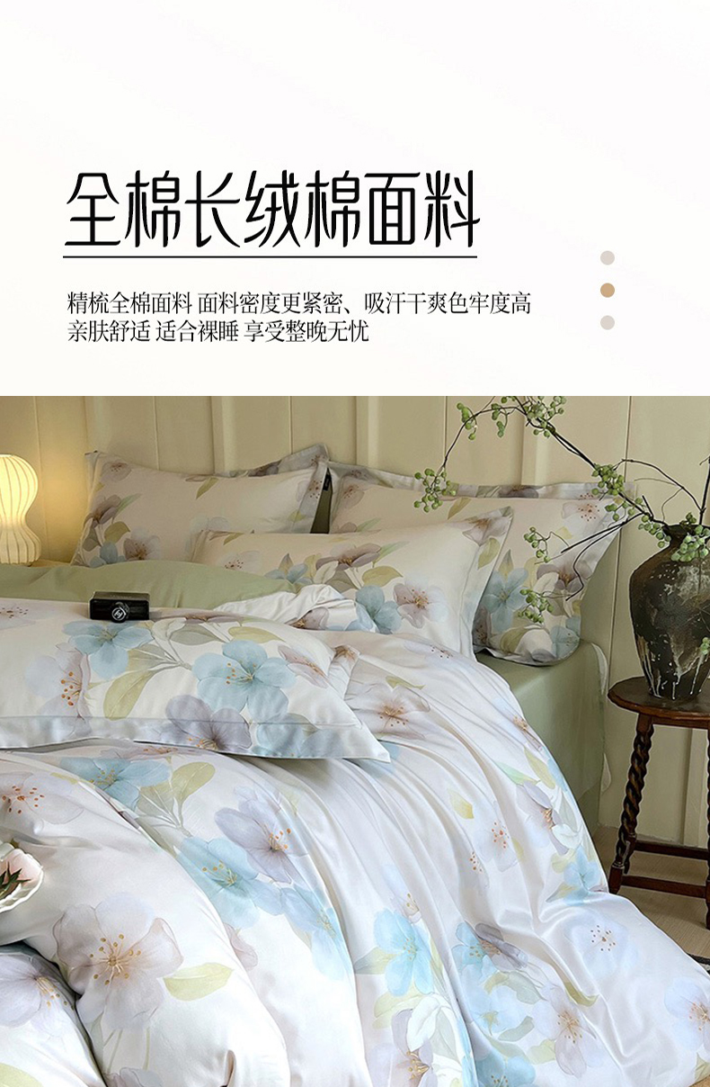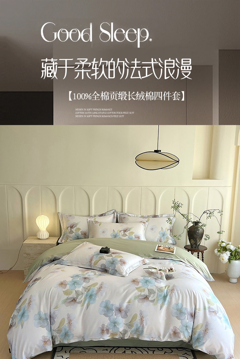 HOdoHome/红豆家纺爱琴海全棉贡缎长绒棉床品四件套200*230cm